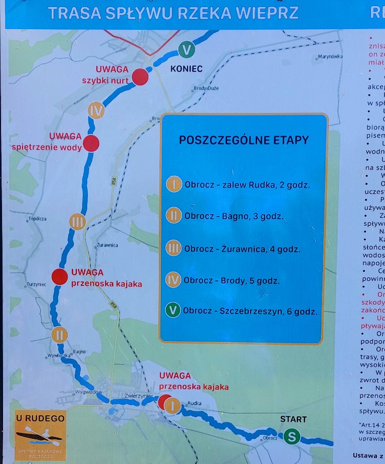 rzeka Wieprz - trasa Obrocz - Zwierzyniec ok 7 km prawie 2 godzinny spacer kajakowy dla nie wprawionych kajakarzy,